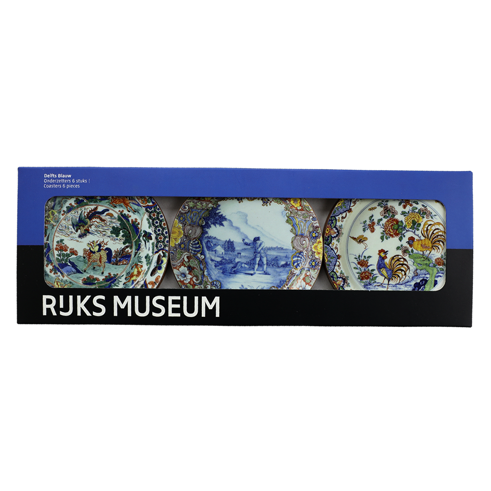 These cork coasters are inspired by various Delft Blue plates from the collection.Great in combination with the Delft Blue mugs or cappuchino cups. Gift tip for a housewarming party, or a great souvenir as a reminder of the Rijksmuseum.