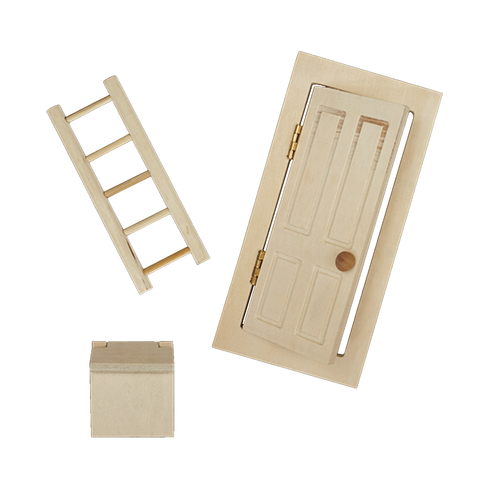 Paint the door in your favourite colour and place it on a base in the bedroom, playroom, or hallway. With the ladder and mailbox, you can make their mouse house completely ready.