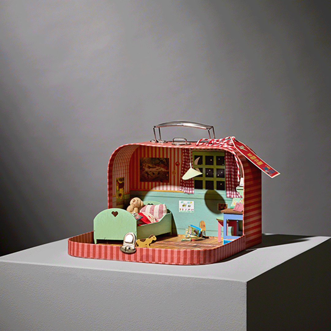 This little suitcase contains everything you need to create a bedroom for Sam, Julia, or your Rijksmuseum mouse. Assemble the furniture easily, get inspired by the dollhouse of Petronella Oortman seen in the At Home in the 17th Century exhibition, and decorate the room however you like. With the included stickers and accessories, you can design the perfect bedroom for your mouse. The handy suitcase lets you take your mouse’s bedroom anywhere for hours of play and adventure.