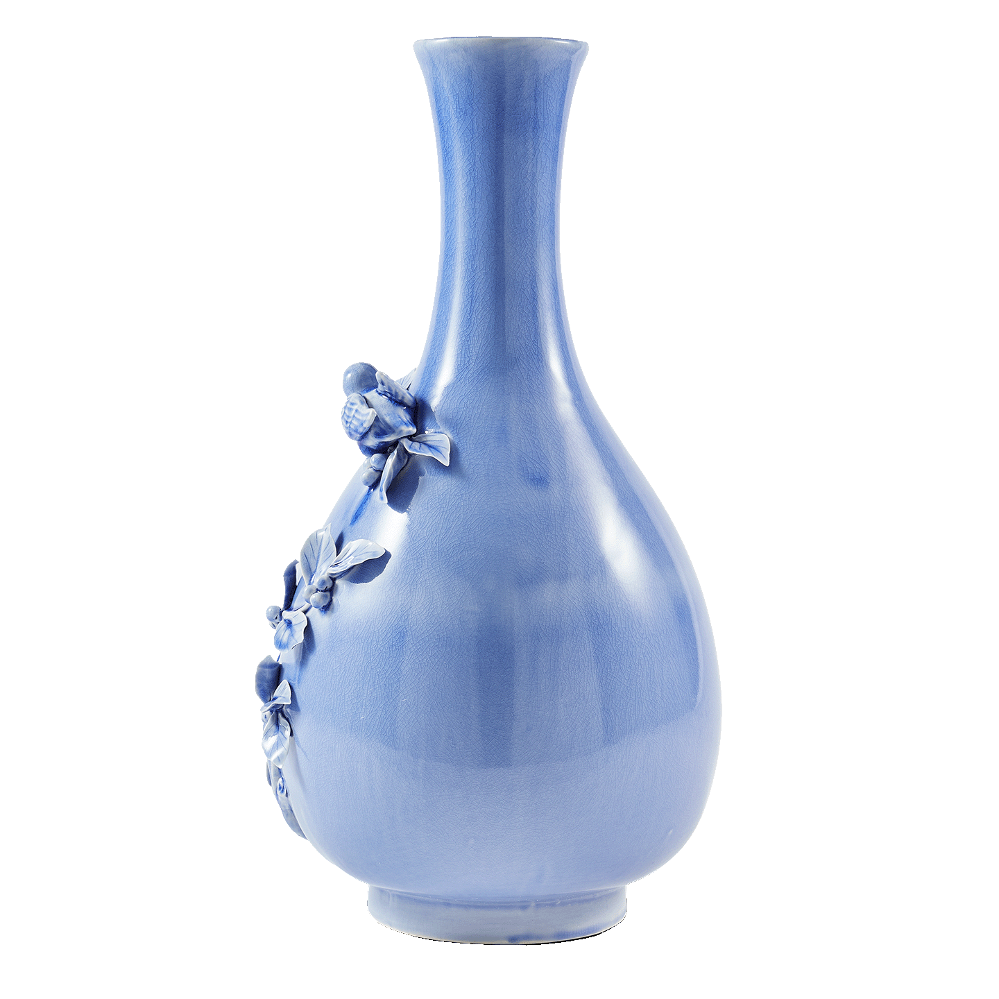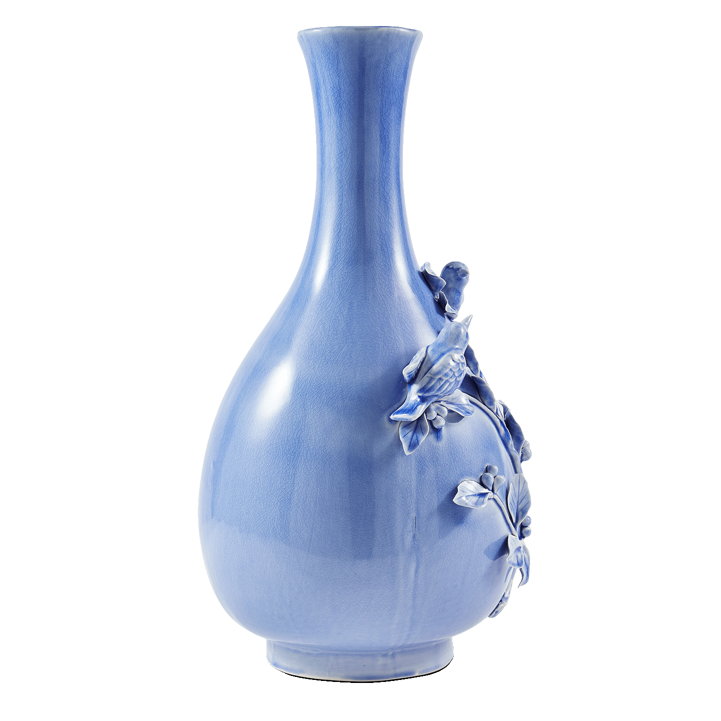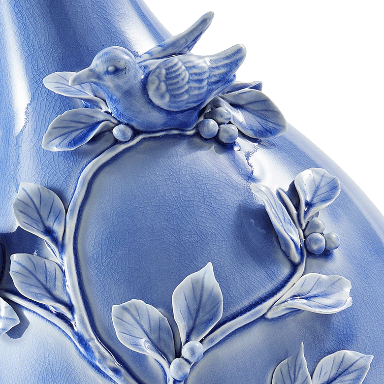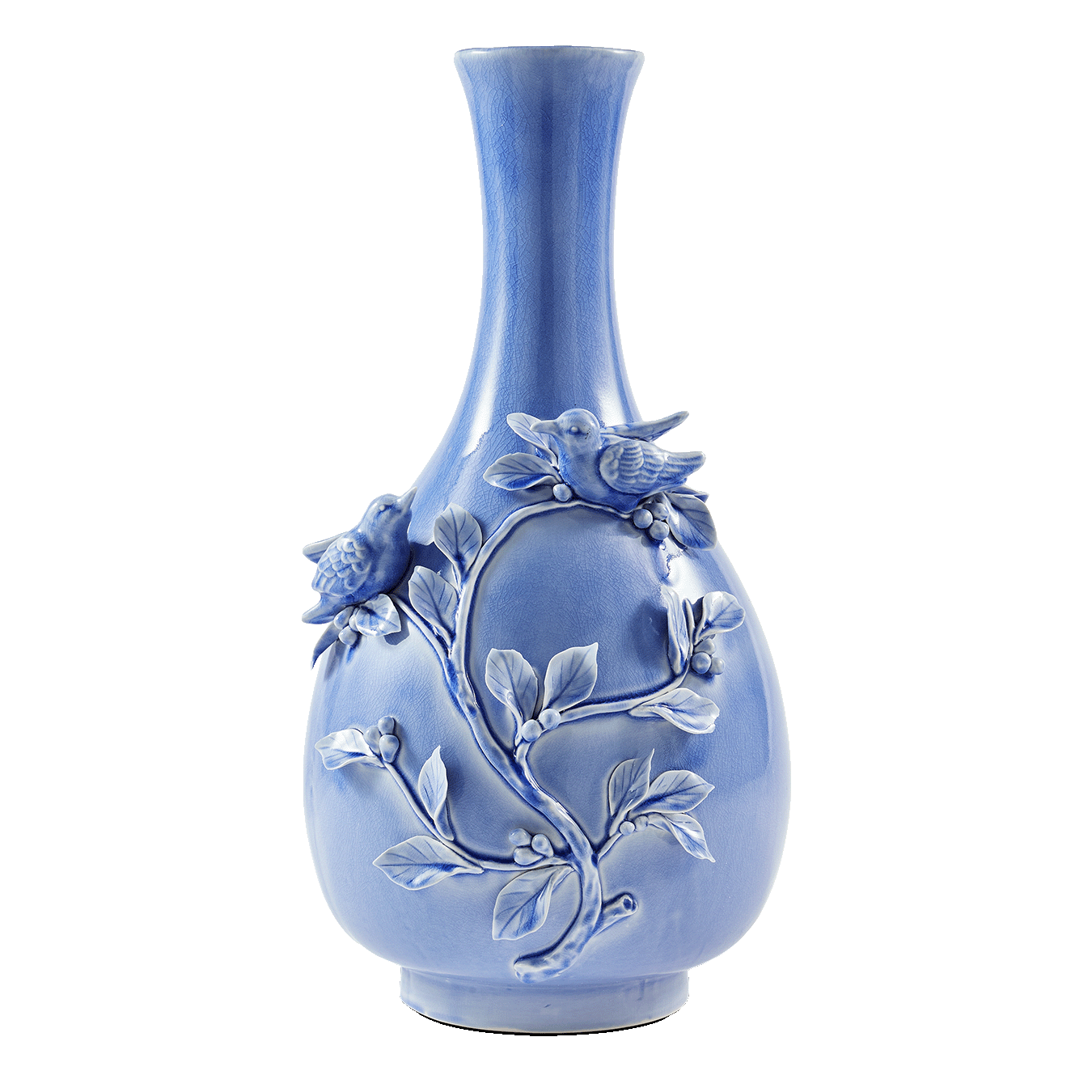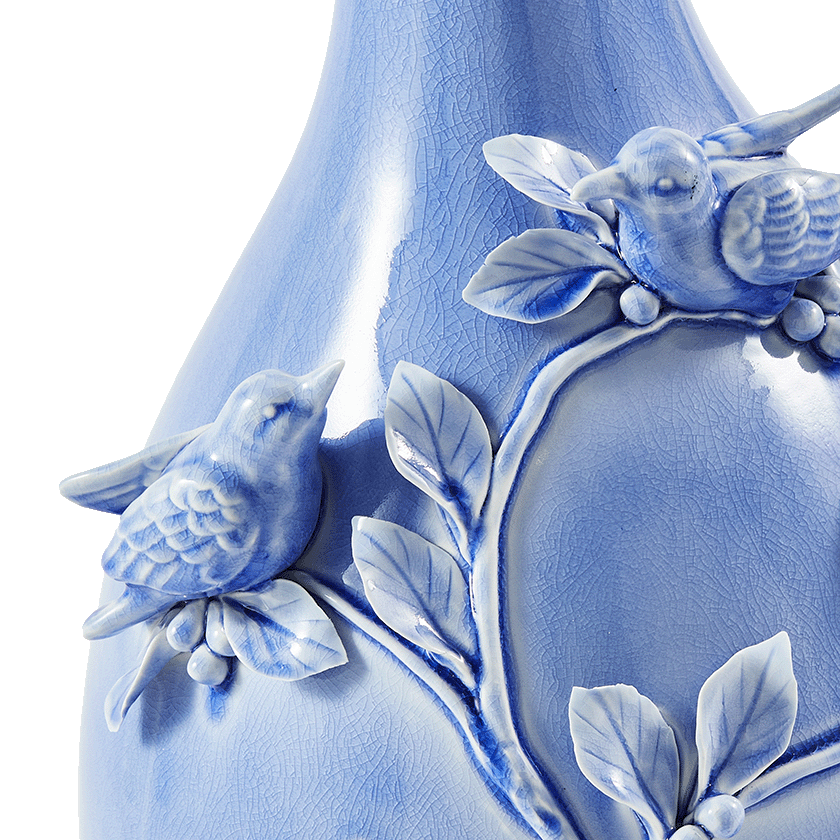 A true standout from the unique Rijksmuseum x Pols Potten collection is this iconic vase. The vase draws its inspiration from a 17th-century Chinese vase and a tile tableau from the same period. The glaze brings the birds from the tile tableau to life. With three colour variants, each vase presents a different character. Available in white, blue and orange.