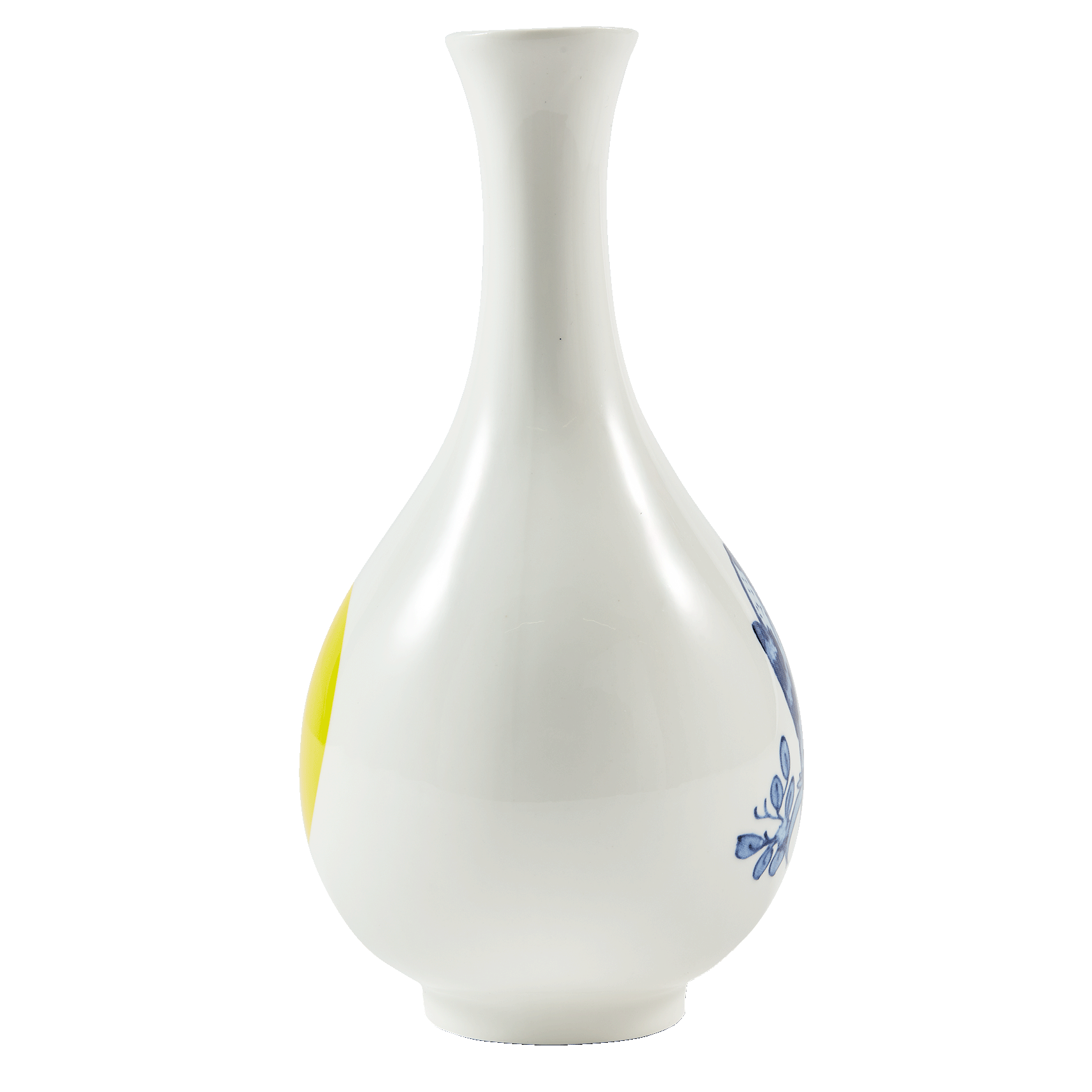 The Rijksmuseum and Pols Potten have joined forces for this collection. The result? Historical motifs reinterpreted in a contemporary design. This time in the form of four porcelain vases. The classic vase shape is inspired by a 17th-century Chinese pear-shaped vase. The birds are derived from a tile tableau in the Rijksmuseum collection. The reverse side is adorned with vibrant colours inspired by Majolica pottery, the predecessor of Delftware. In short, four unique vases with timeless design. Available in orange, blue, yellow, and green.