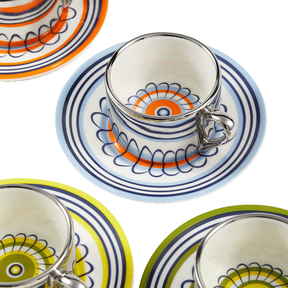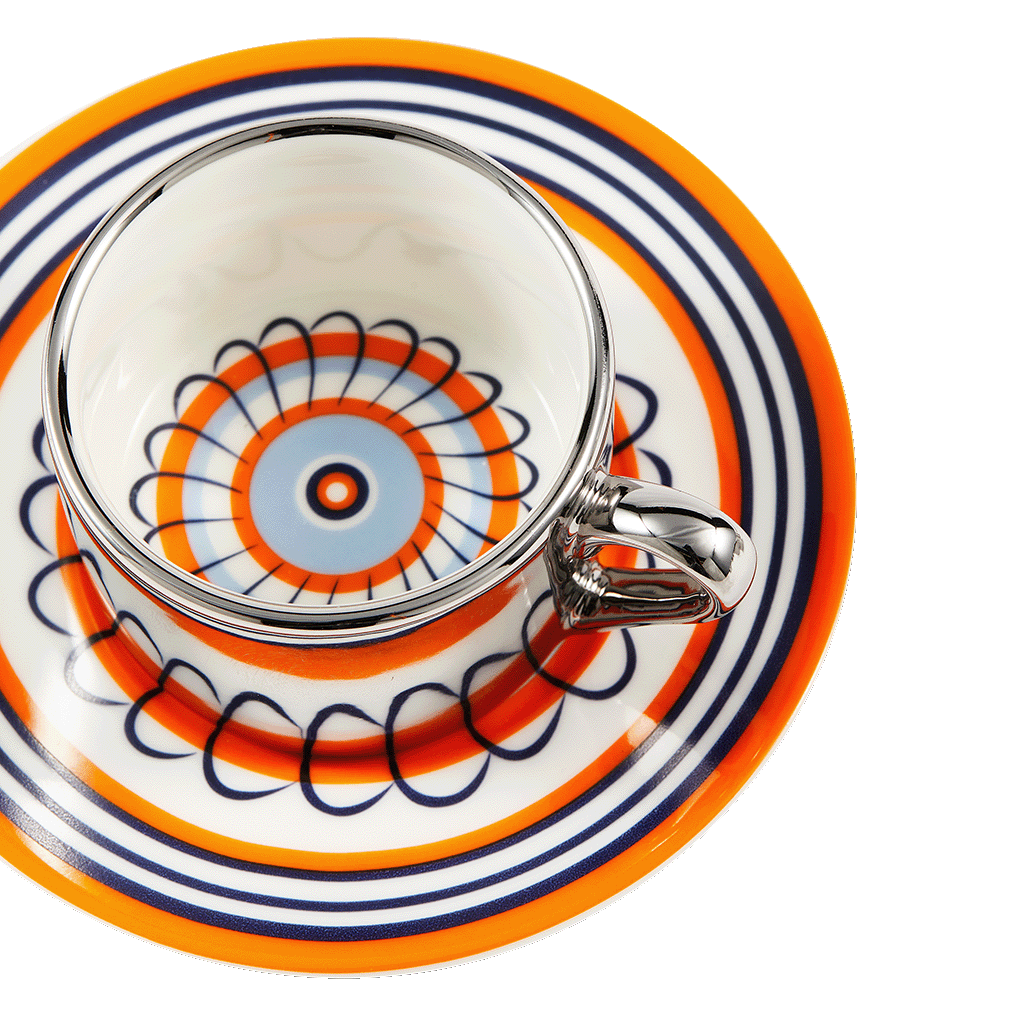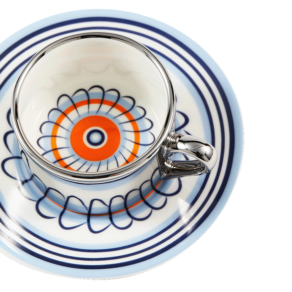 Espresso set flowers oranje/blauw