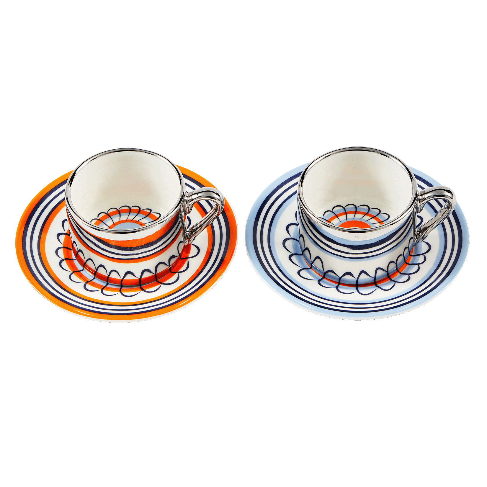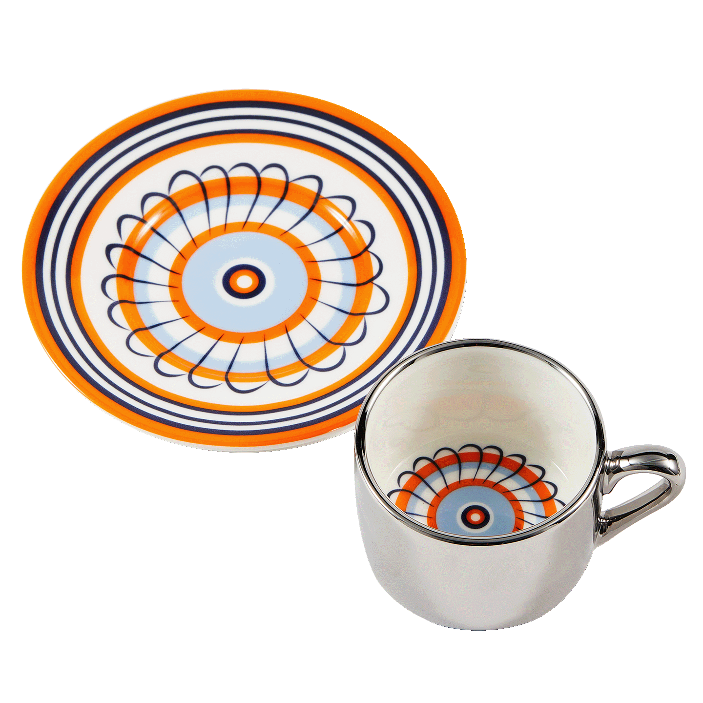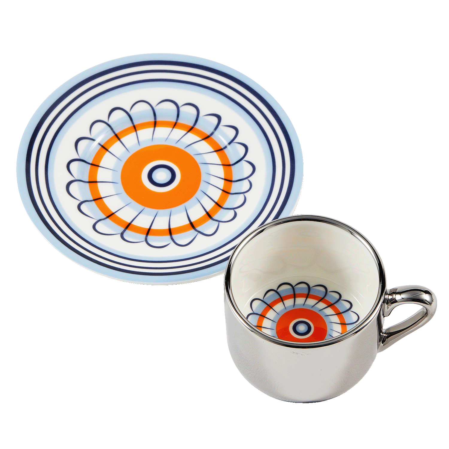 Espresso set flowers oranje/blauw