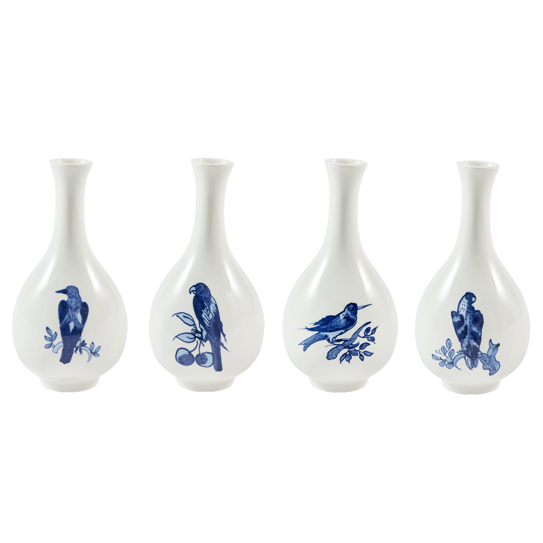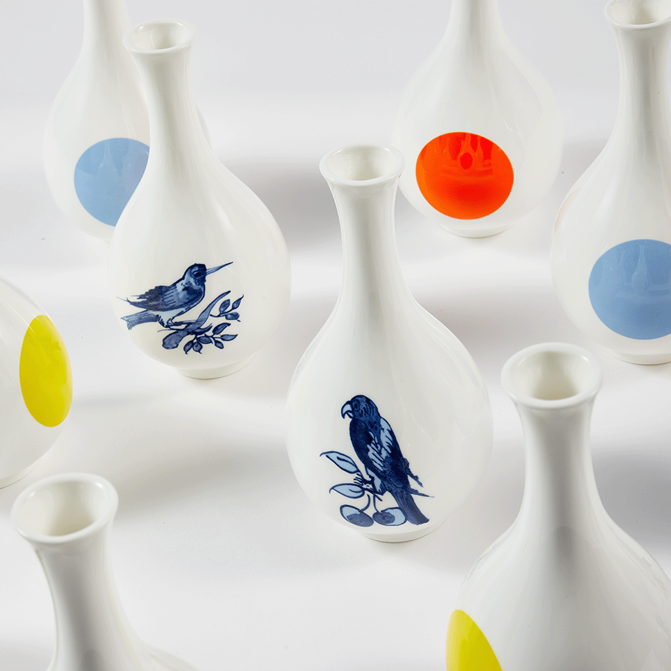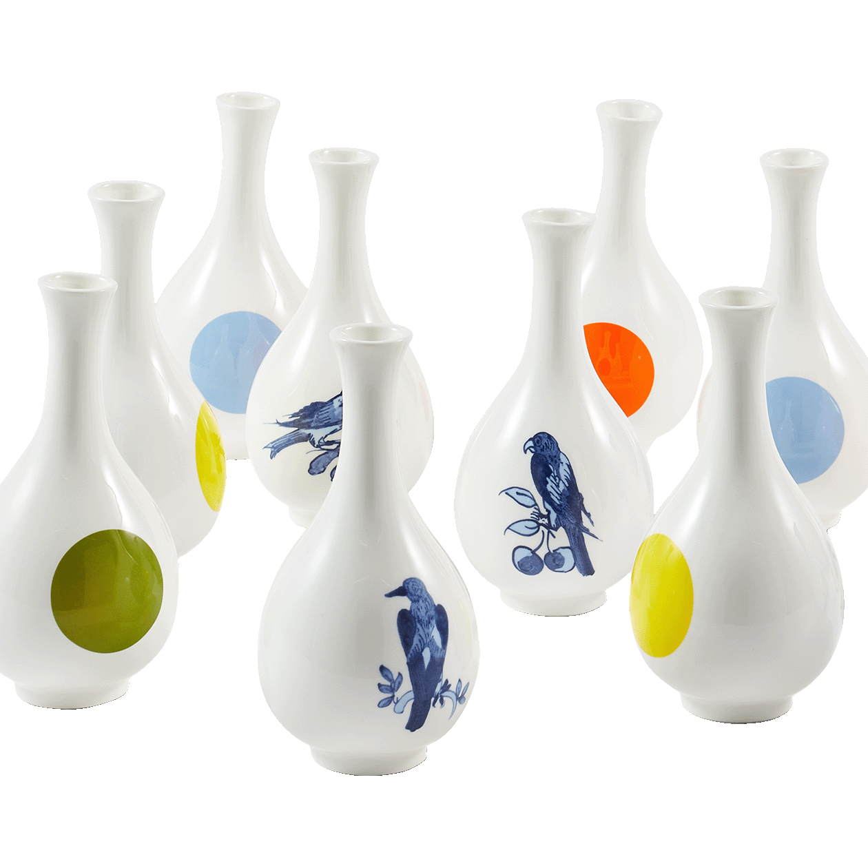 Het Rijksmuseum en POLSPOTTEN hebben voor deze collectie hun krachten gebundeld.  Het resultaat?  Historische motieven vertaalt naar het heden in een eigentijds design. Dit keer in de vorm van vier porseleinen vaasjes. De klassieke vaasvorm is geïnspireerd op een peervormige Chinese vaas uit de 17de eeuw. De vogels zijn ontleend aan een tegeltableau uit de collectie van het Rijksmuseum. De achterzijde is verrijkt met levendige kleuren zijn ontleend aan de Majolica Keramiek, de voorganger van Delfts Blauw. Kortom vier unieke vazen met een tijdloos design. Beschikbaar in de kleuren oranje, blauw, geel en groen.